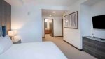 This 1600 square foot unit features two bedrooms and three bathrooms, plenty of space for up to six guests. The comfortable master bedroom offers a king bed with lavish pillows and luxury bedding. There is a sizeable work desk in the corner to complete any last-minute work for those business travelers. Bedding in the second bedroom varies but will typically consist of either a queen bed or set of bunk beds. Both rooms feature en-suite bathrooms complete with granite countertops and heated floors. Most of the two-bedroom residences also offer an additional queen sofa sleeper in the living room. Any bedding requirements may be described at the time of booking, and we will see to it that your requests are granted.